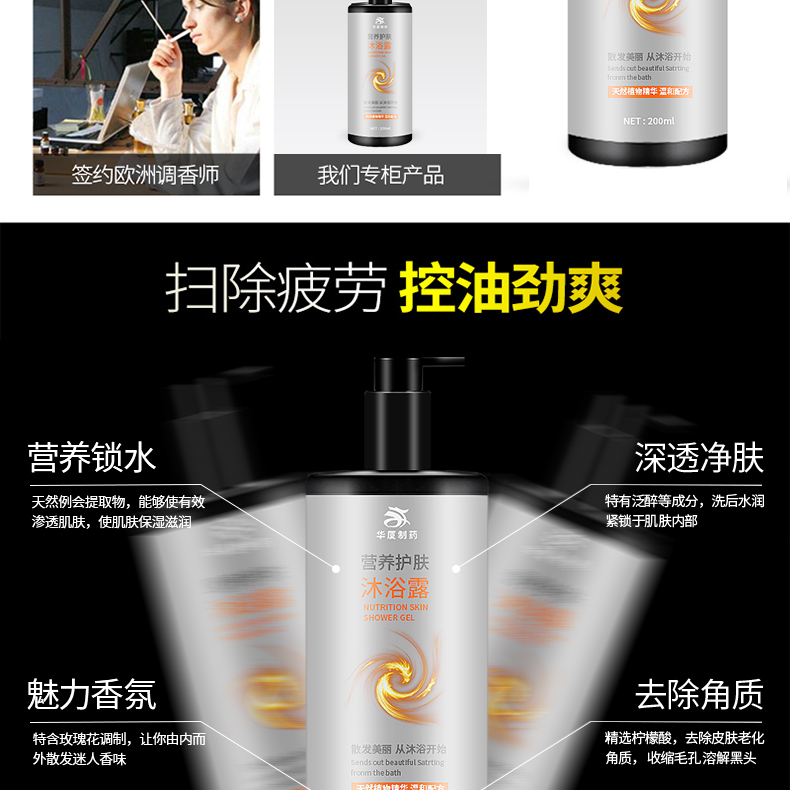 这是源自欧洲的百年香型专柜配方,男士清爽沐浴露。男人本质的境界,古龙香氛沐