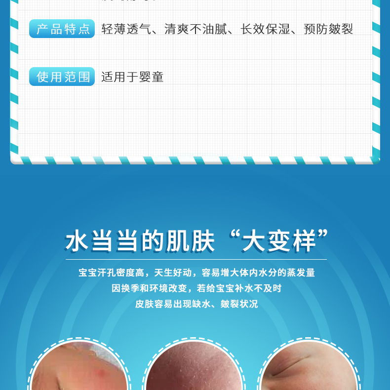 华厦婴儿润肤霜能锁水。锁水成分起到的作用是减少水分从肌肤表面的流失,这类成分通常比较油腻。保湿和锁水成分往往共同作用,增强肌肤的滋润度,为肌肤建立起屏障。
