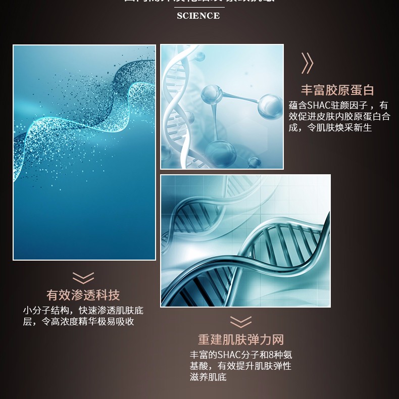 当你的肌肤出现问题时,能补充肌肤所需要的营养、水分,强化肌肤天然抵抗力;另一方面,精华素会刺激加速细胞的修护与更新,带动皮肤新陈代谢,让肌肤更加明亮紧致。