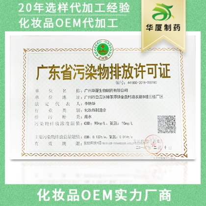 广州华厦生物制药创建于1999年年底;公司位于广州市白云区美丽的帽峰山脚下;占地15000平方;其中生产面积5000平方;是一个集日化洗涤、化妆护肤、消字号一体化的大型综合的加工厂;本厂注重生态环境与卫生健康标准;工厂采用目前化妆品最高标准的10级GMPC建造车间;零污染化设计;具有生产眼部和婴幼儿产品资质;